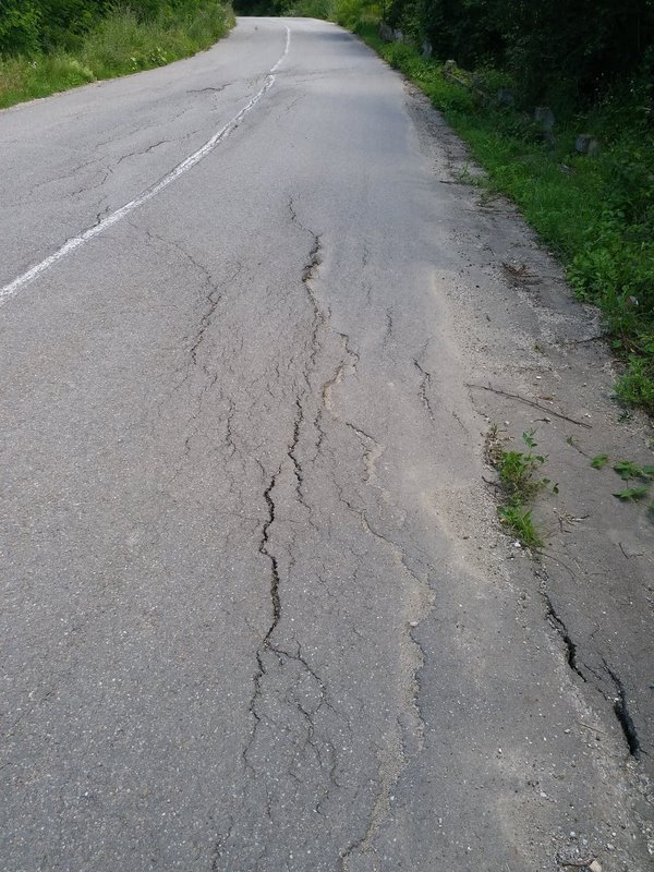 FOTO ȘTIREA TA: Alunecările de teren au stricat drumul dintre Hopârta și Șpălnaca. Denivelări în asfalt, pe DJ 107E