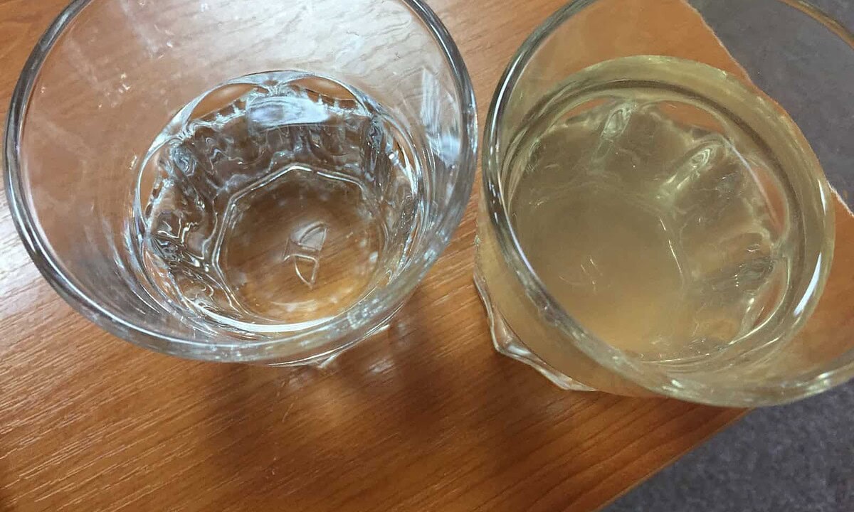 Pe lângă culoarea neobişnuită, apa are și un miros de metal. Diferențele de culoare se pot vedea clar între un pahar cu apă plată, din sticlă și unul cu apă de la robinet.
