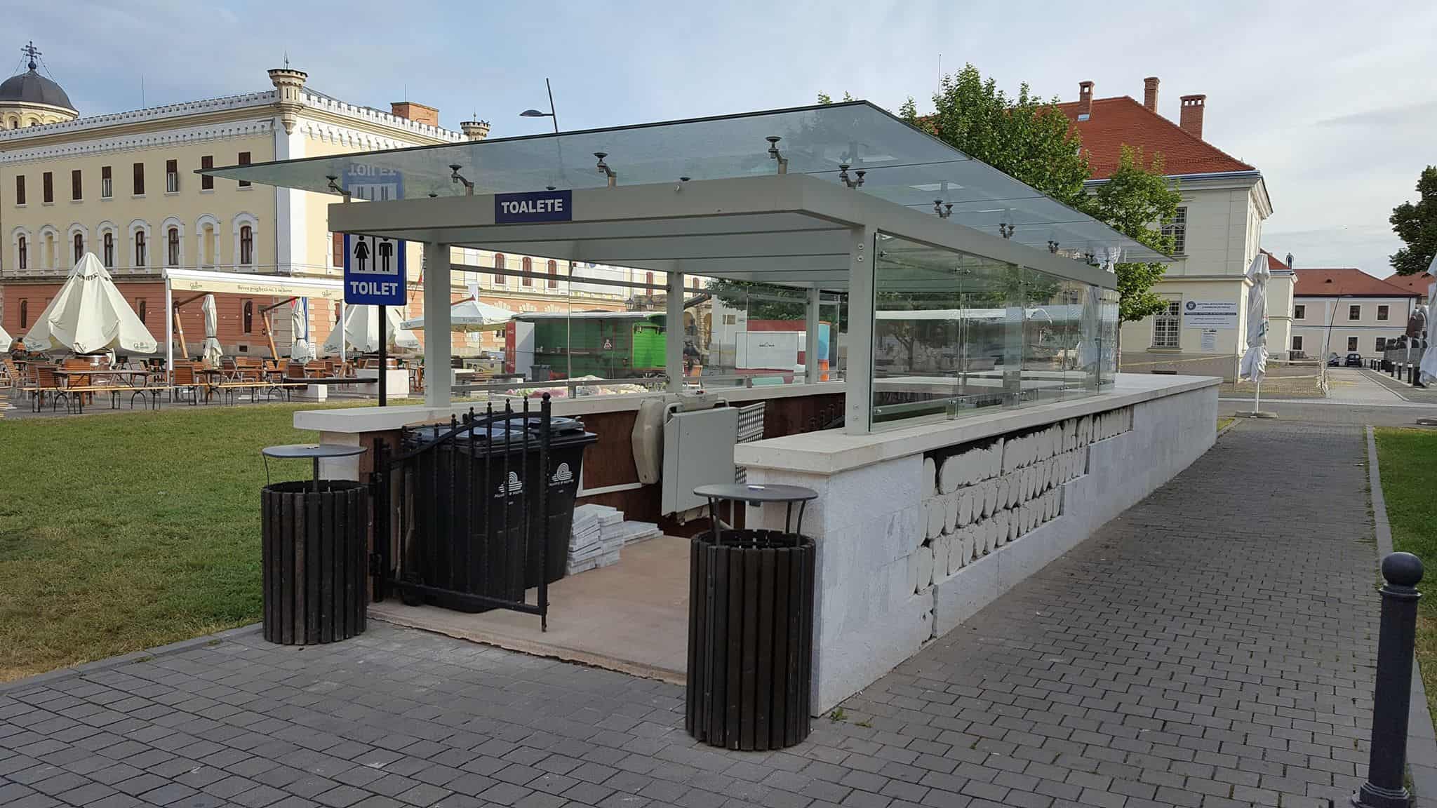 Grupul sanitar poate fi folosit de turişti, dar şi de trecători pentru taxa de 1 leu. Este administrat de o firmă privată şi dispune, pe lângă utilităţile specifice unei toalete publice, şi de un hol imens, cu bănci aflate în imediata apropiere a încăperii în care se află vestigiile medievale a căror istorie este menţionată pe o placă explicativă. Este vorba de o construcţie de zidărie din piatră, din care se mai păstrează parţial un traseu de zid în forma literei L. Edificiul poate fi identificat cu magazia de făină. Depozitul făcea corp comun cu zidul de protecţie ce delimita incinta Palatului Princiar în perioada medievală (secolele XVI-XVII).