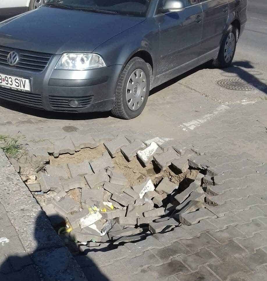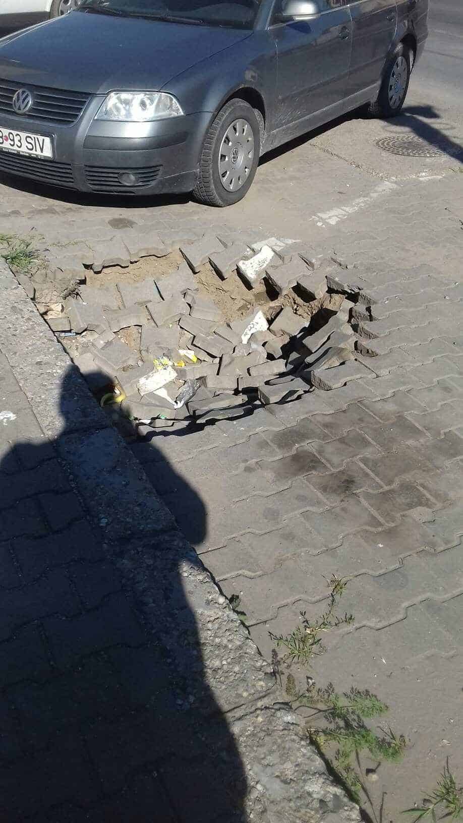 FOTO ȘTIREA TA: Crater într-o parcare din Alba Iulia. „Capcană” pentru mașini pe Bulevardul Republicii