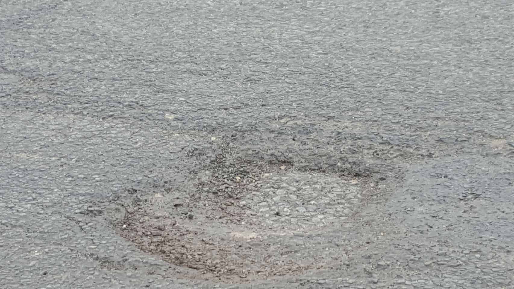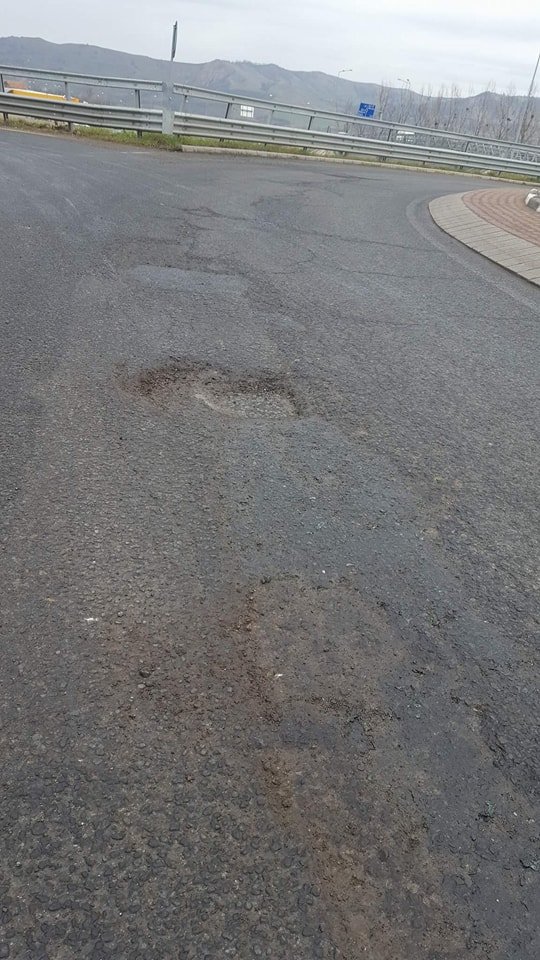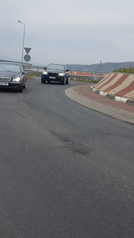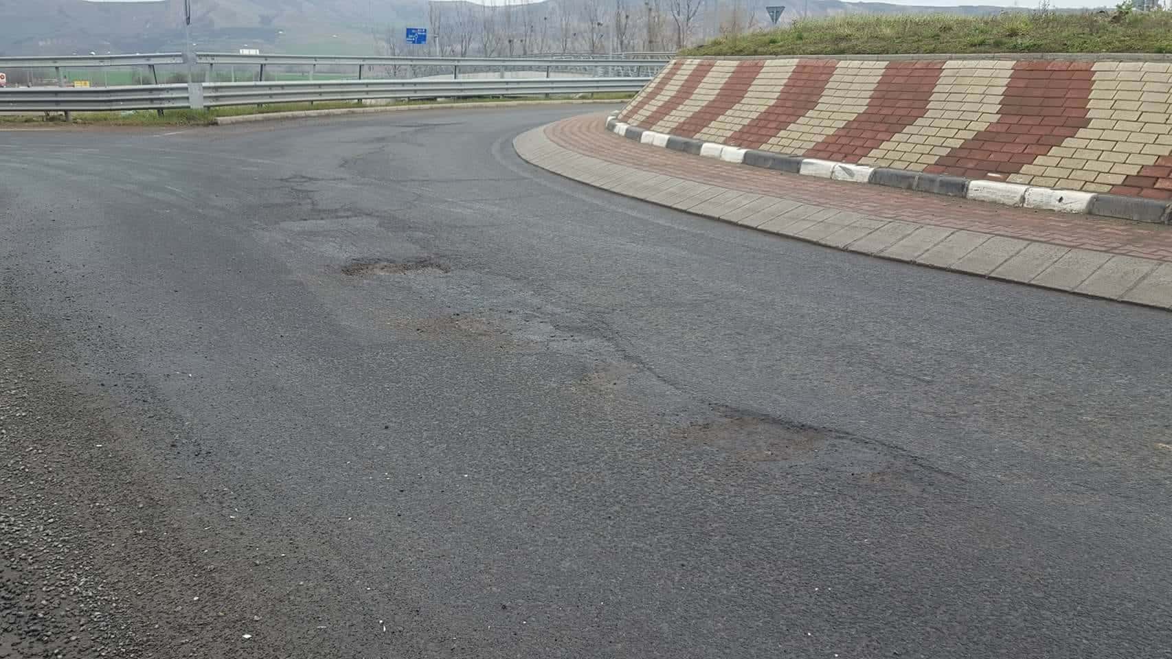FOTO ȘTIREA TA: Cratere în asfalt, la sensul giratoriu Lancrăm-Sebeş, ieșirea de pe autostradă