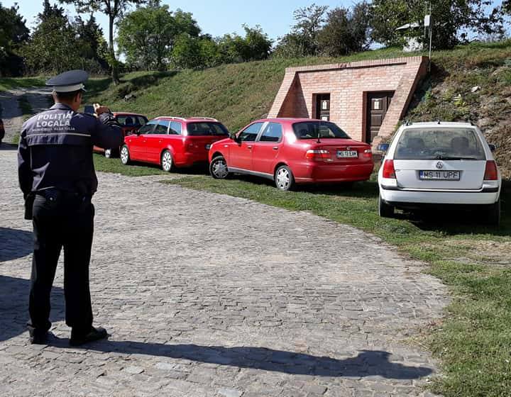Preoții Romano catolicii și credincioșii veniți la hramul catedralei,nu au parcat pe zone interzise.Parcarea aceea aparține Arhiepiscopiei Romano Catolice.Zona verde care se vede în fotografie,călcată în picioare de toată lumea nu este zona verde.În timpul verii acolo nu se iriga cu apa, doar în fața catedralei,unde pe iarba frumos crescuta turiștii întind masa mare și se și culca, dar nu sunt amendați.De ce oare au fost amendați creștinii și preoții romano catolici maghiari, care au venit sa-l slăvească pe Dumnezeu ?