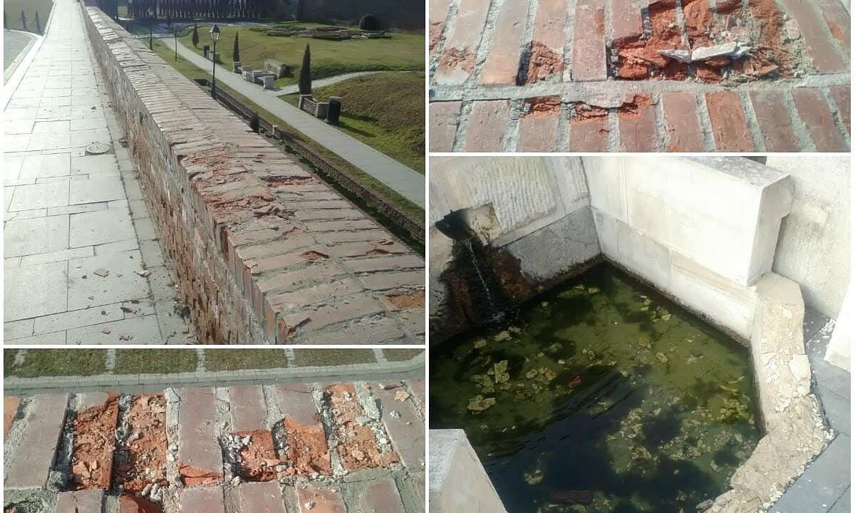 În timpul unei plimbări, un cititor alba24 a surprins zone extinse perimetrul fortificației care au acestă problemă. Cărămidă fărâmițată și căzută pe zonele de plimbare, o fântână dărâmată de câteva luni, apă inflitrată, sunt doar câteva elemente care arată cum iese din iarnă, Cetatea din Alba Iulia, dar și calitatea lucrărilor executate. ”Vă trimit un set de fotografii din cetatea de mămăligă, astăzi, 02.02.2018”, ne-a scris cititorul nostru.
