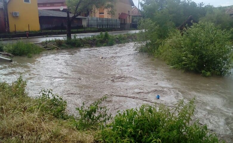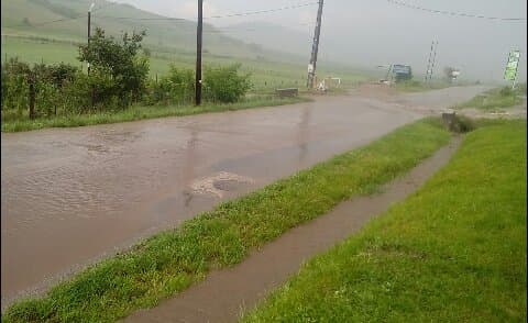 Mai multe curți au fost inundate sâmbătă după-amiaza, în localitatea Cergău Mare din Alba, după o ploaie torențială.