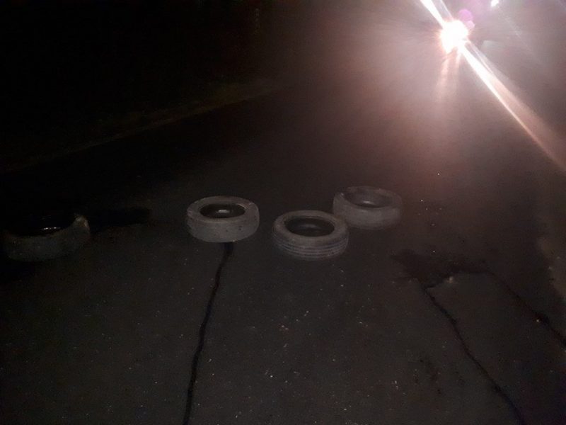 DN 74, la ieșire din Zlatna spre Abrud, a fost „blocat” vineri seara de patru cauciucuri pune în mijlocul drumului. Incidentul a fost semnalat de un cititor Alba24 care se afla în zonă în acel moment.
