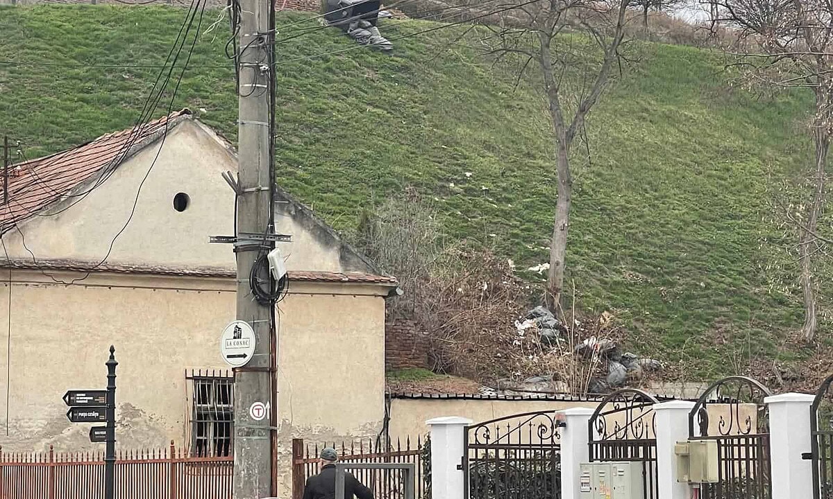 Gunoaiele s-au împrăștiat pe toată panta dealului, ajungând până la baza zidului fortificației.