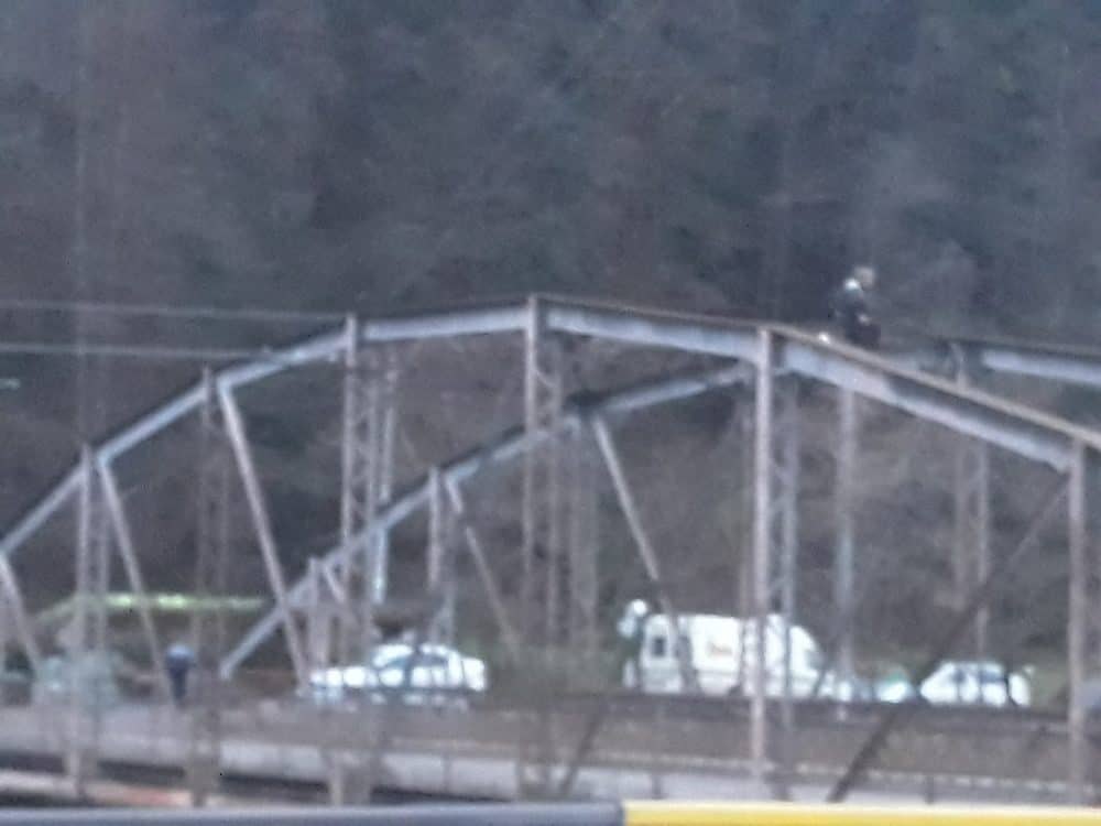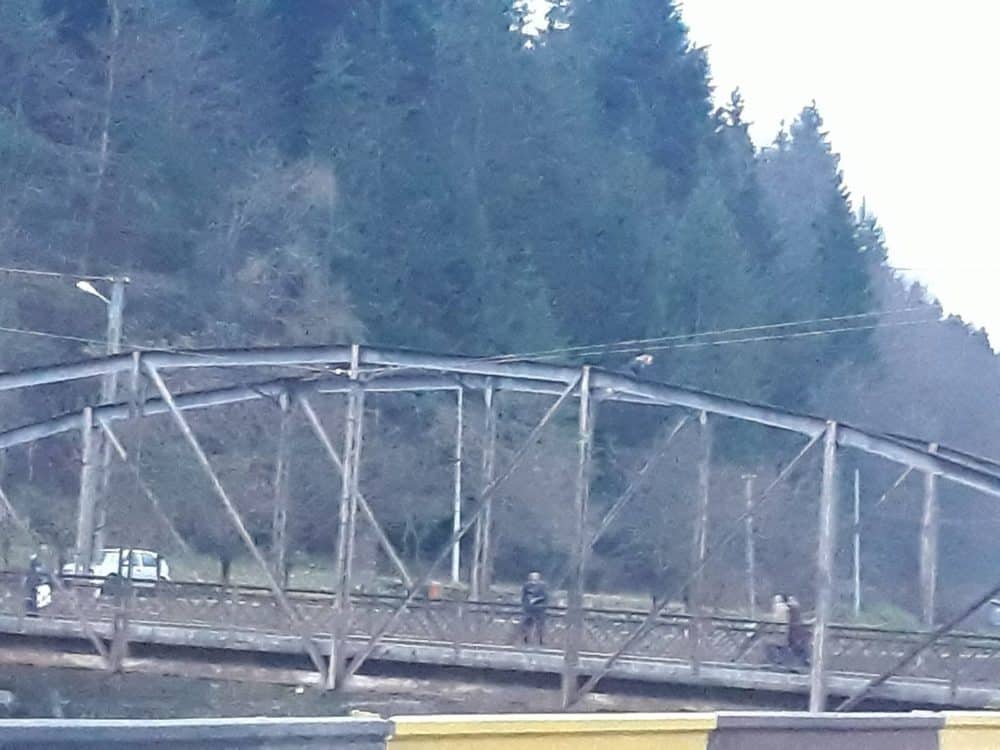 FOTO ȘTIREA TA: Imagini ciudate cu un bărbat urcat pe podul de la Cîmpeni. A stat sus minute în șir