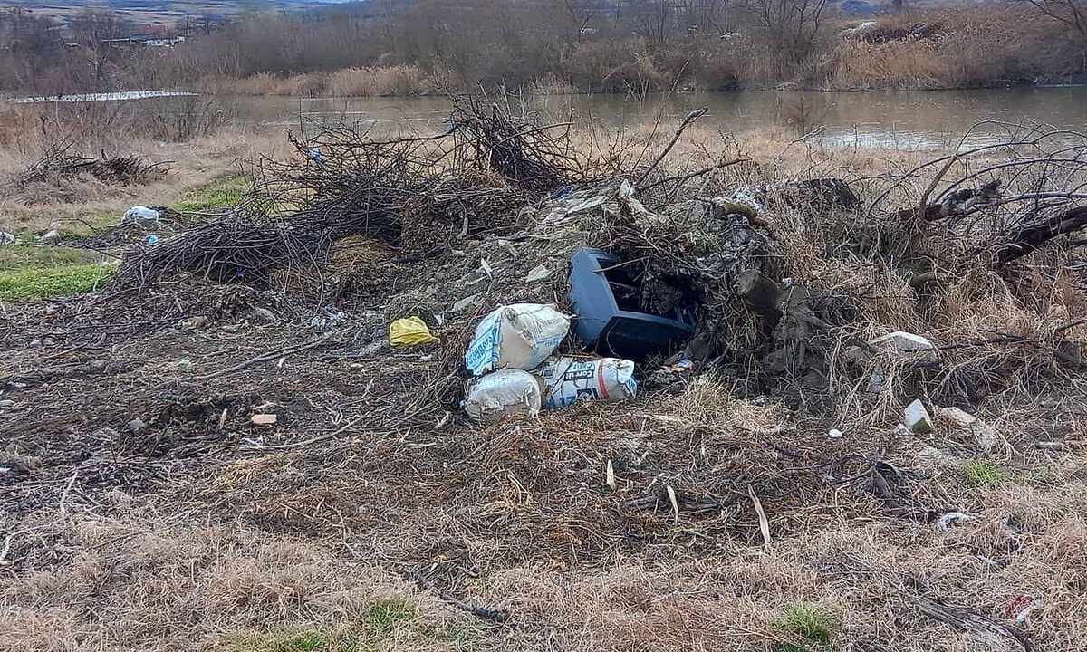După cum se poate vedea și în pozele trimise pe adresa redacției de localnic, pe lângă saci întregi de gunoi menajer, malul râului a devenit groapă de gunoi pentru rezidurile din construcții.