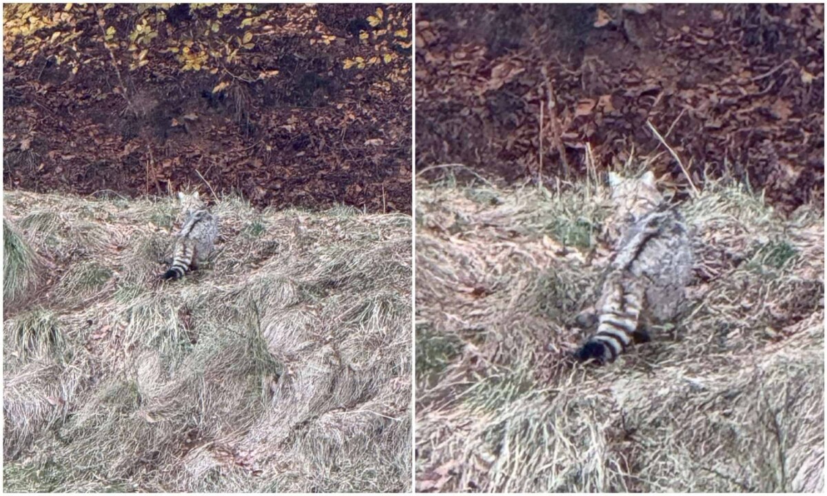 Pisica a fost văzută sâmbătă, 26 octombrie, în jurul orei 16:30-16:40, de către un bărbat care mergea cu mașina pe drumul forestier, în zona Cheile Caprei.