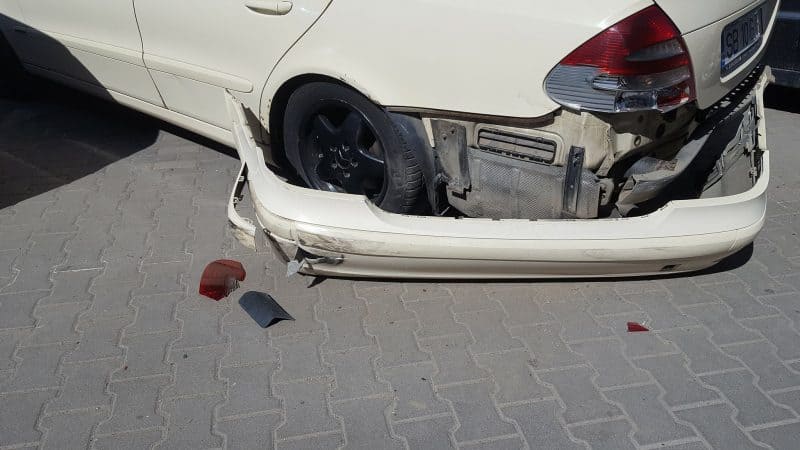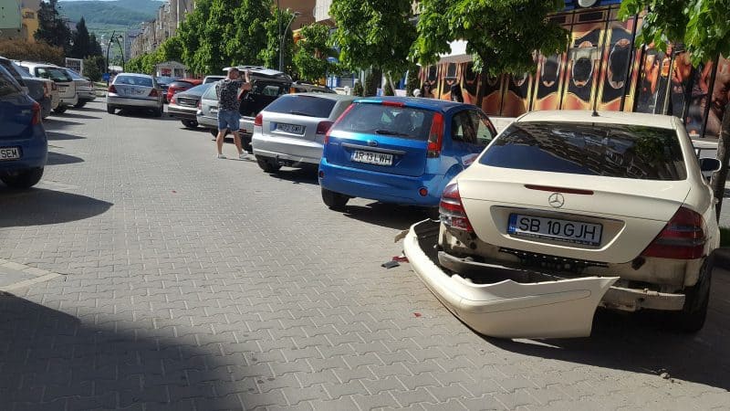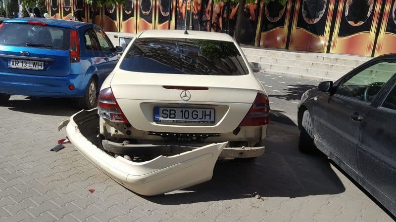 O mașină marca Mercedes, parcată pe Bulevardul Transilvaniei din Alba Iulia, în zona Pasaj, a rămas sâmbătă fără bara din spate, după ce o șoferiță a acroșat autoturismul, din „neatenție”.