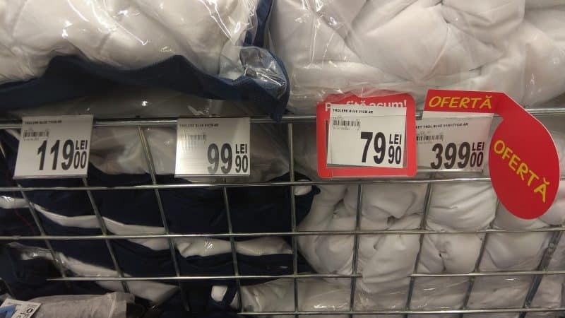 Nici reducerile nu mai sunt ce erau odată. Un supermarket din Alba Iulia propune clienților un pachet „la ofertă” format din trei genți de voiaj, însă cei care aleg să le cumpere separat pot salva 100 de lei.