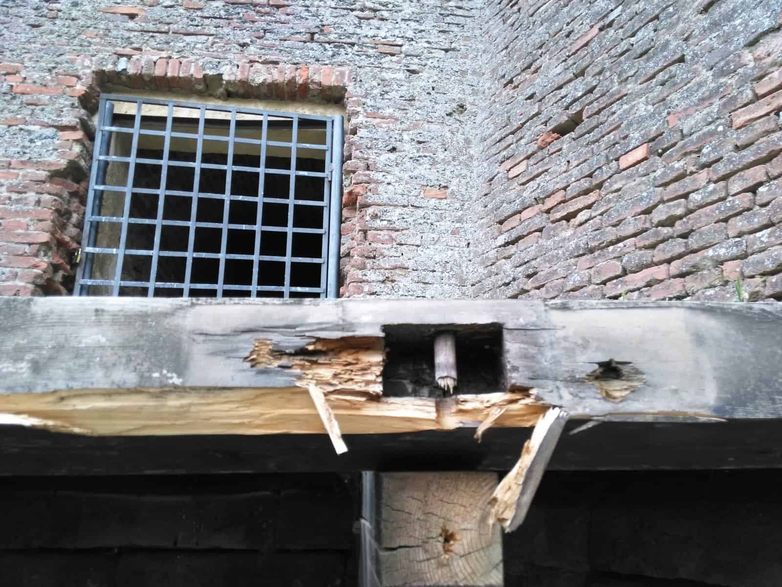 Distrugerile nu sunt tocmai la vedere, ci pe una dintre aleile secundare, labirintice ale cetății, care este, de altfel, mai puțin circulată.