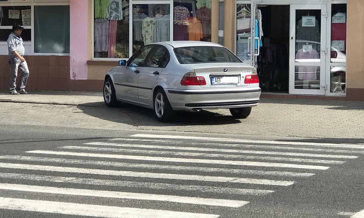 Pe imaginile surprinse joi de cititorul Alba24 se poate observa un autoturism marca BMW, „cocoțat” pe trotuar, în dreptul unei treceri de pietoni, chiar dacă în zonă sunt mai multe locuri de parcare libere.