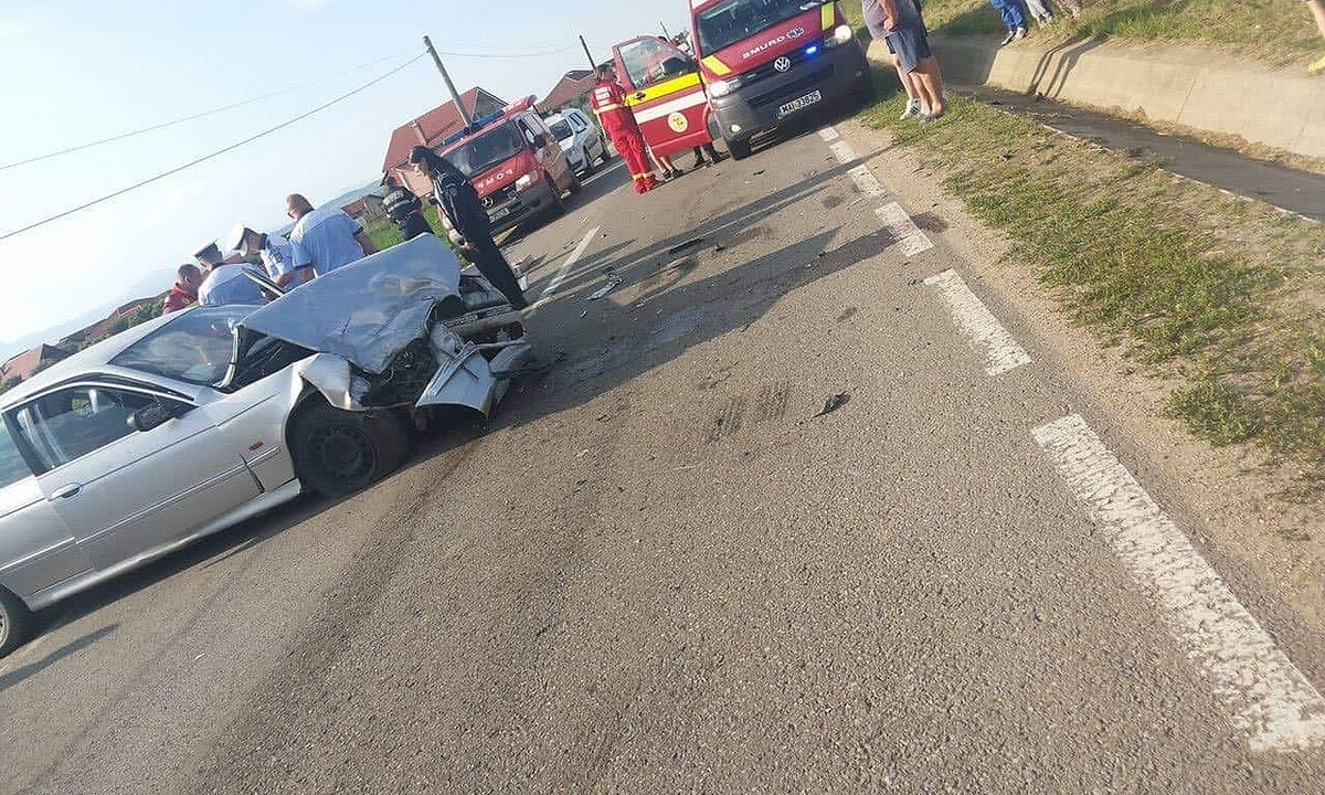 FOTO ȘTIREA TA pe Alba24.ro: Accident cu doi răniți între Ciugud și Șeușa. Posibile cauze: depășire și schimbarea direcției de mers