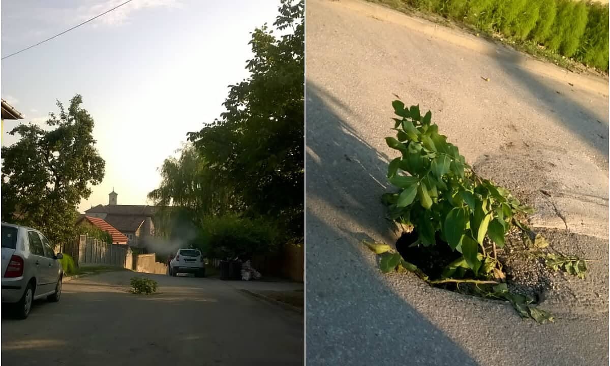 FOTO ȘTIREA TA pe Alba24: S-a surpat asfaltul pe o stradă din Alba Iulia. Craterul, semnalizat cu o creangă de cetățeni