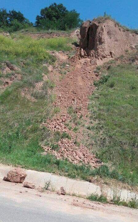 În imagine se vede că o parte din malul de pământ a ajuns deja pe carosabil.