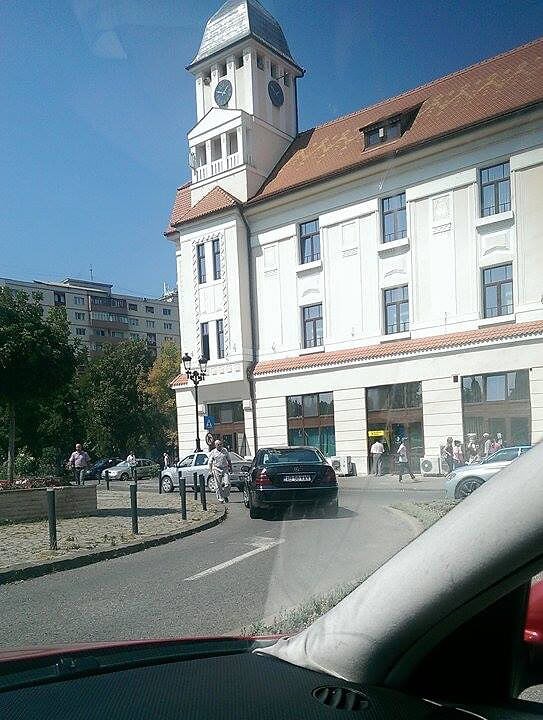 Potrivit cititorului, șoferul mașinii marca Mercedes a blocat ieșirea din parcarea situată în Piața Iuliu Maniu, în centrul municipiului Alba Iulia.