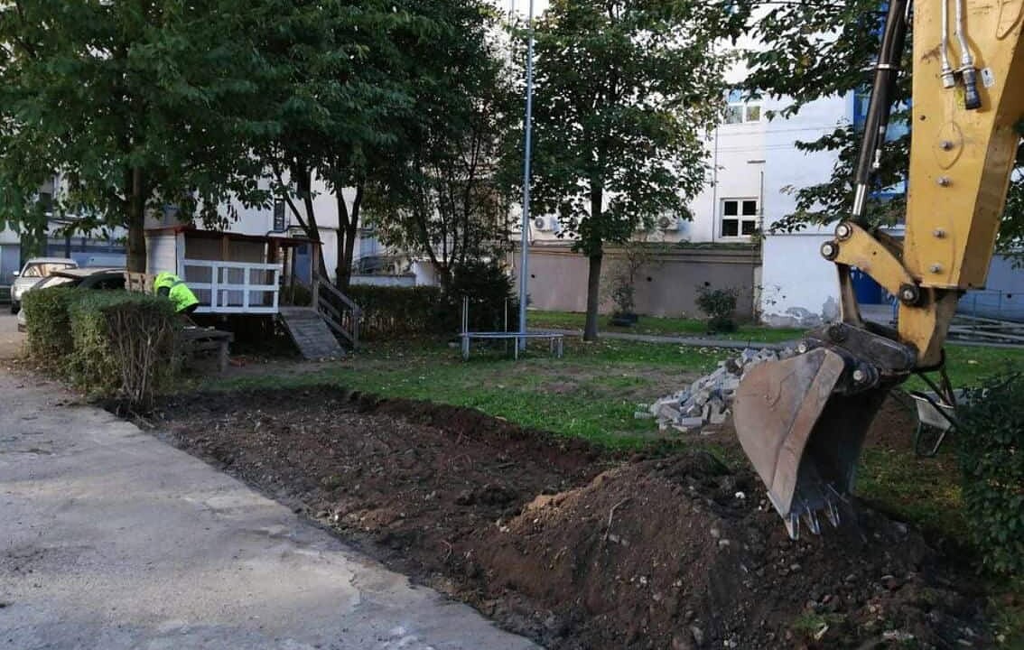 În fata blocului ANL s-au demarat lucrările de montare a pubelelor de gunoi, exact în zona verde.