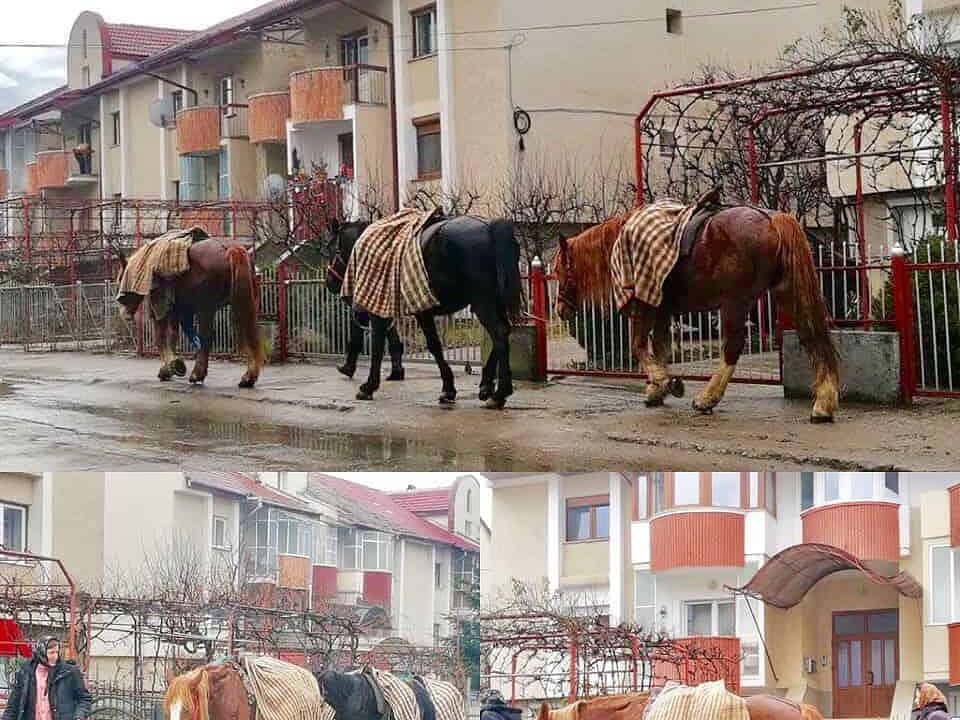 O imagine pe care nu o vezi foarte des a fost surprinsă pe străzile din Cugir. Două femei și-au scos animalele la plimbare, însă nu vorbim de animalele de companie, ci despre trei cai.