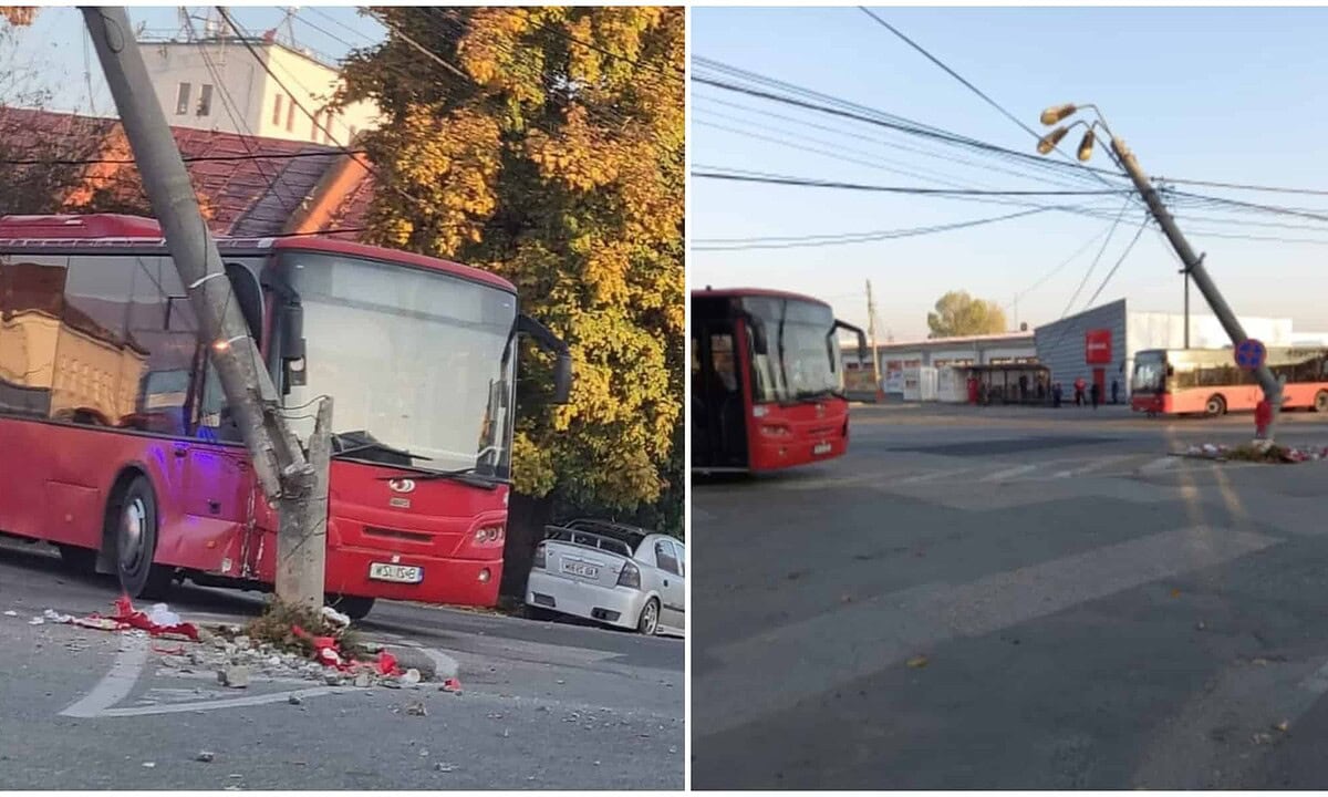 Un stâlp de curent aflat în fața Gării CFR din Alba Iulia, în intersecția dintre B-dul Încoronării și strada Iașilor, a fost lovit sâmbătă de un autobuz.