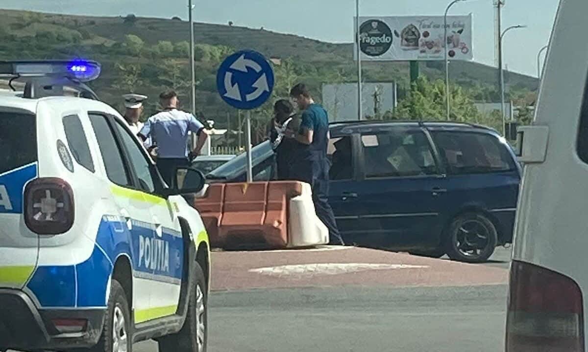 Două autoturisme s-au ciocnit în sensul giratoriu de la ieșirea din parcarea magazinului. Nu s-au înregistrat victime.