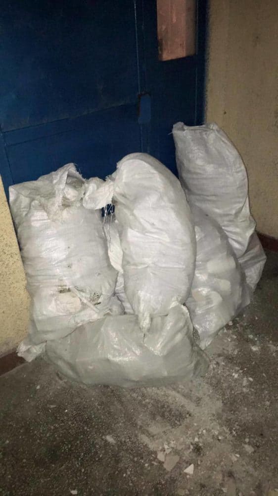 FOTO ȘTIREA TA: Tupeu fără margini, la Alba Iulia. Locatari blocați în scara unui imobil, cu saci de moloz
