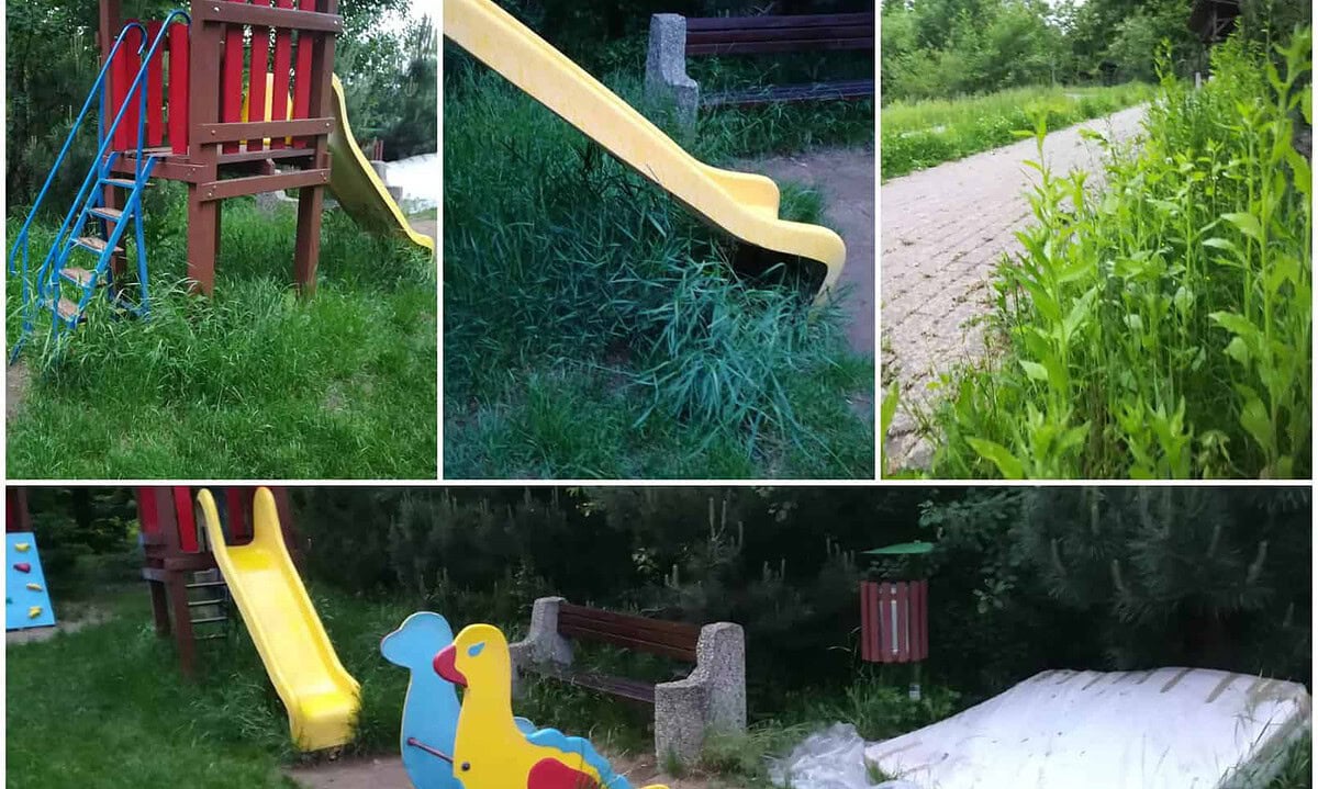 Iarba a crescut peste tot, iar locurile de joacă au fost năpădite de buruieni.