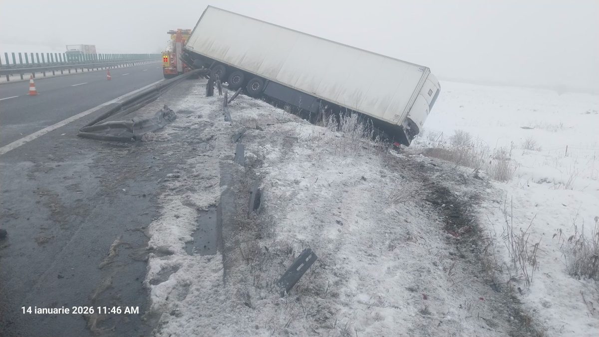 Traficul rutier este restricționat miercuri după-amiaza pe Autostrada A1 Sibiu - Sebeș, între Săliște și Apoldu de Jos. Potrivit DRDP Brașov, se lucrează la recuperarea unui TIR răsturnat.