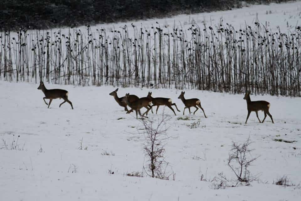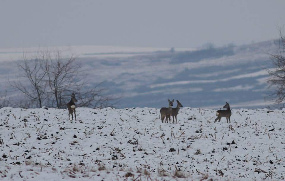 FOTO: Turme de căprioare, fotografiate pe zăpadă, în jurul orașului Alba Iulia