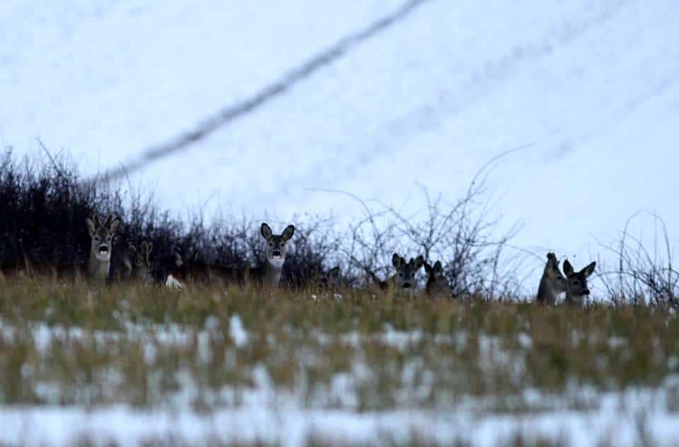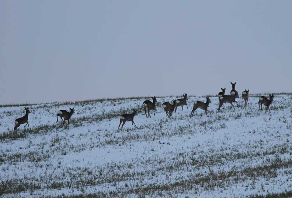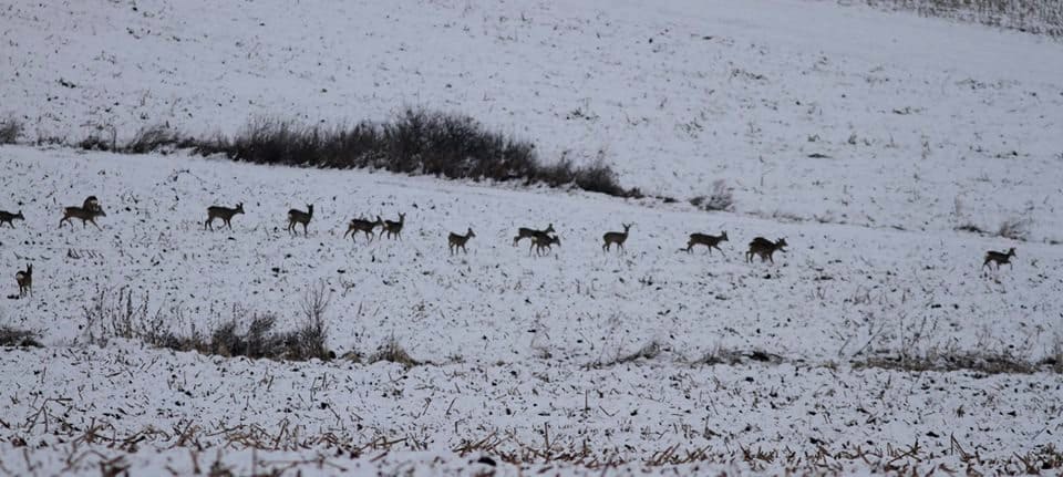 În fotografii se pot vedea efective foarte mari de animale. Spre exemplu, într-una dintre imagini se poate observa o turmă formată din 18 exemplare. În această perioadă, în care există puțină zăpadă pe tarlalele agricole din jurul orașului, animalele sunt mai vizibile.
