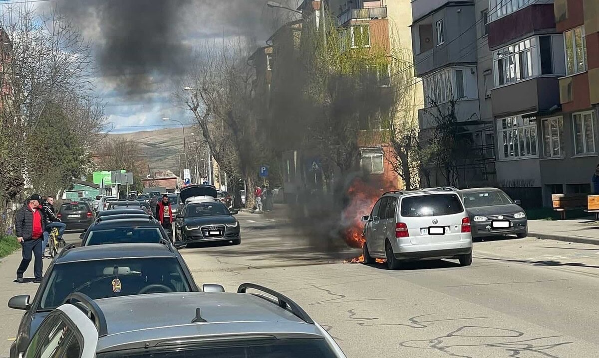 O mașină a luat foc în trafic, într-un cartier din Alba Iulia. Potrivi martorilor oculari este vorba despre un autoturism cu numere de înmatriculare din Cluj.