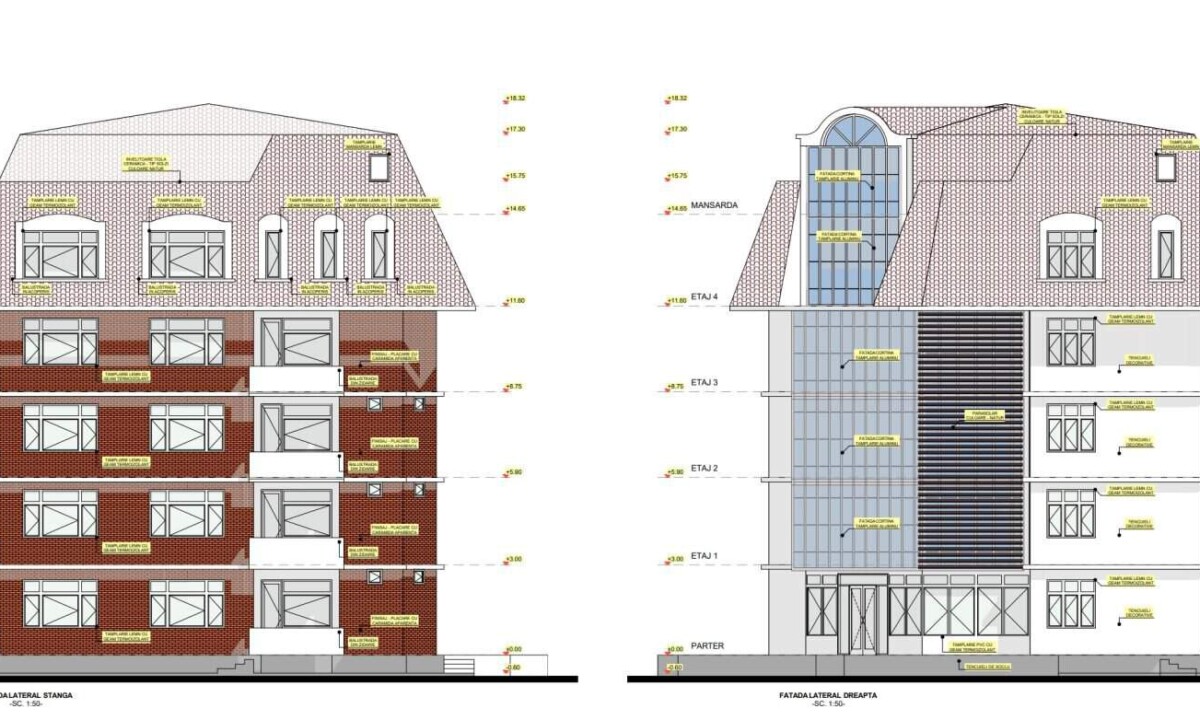 - refacerea anvelopei la nivelul mansardei și etajului 4;