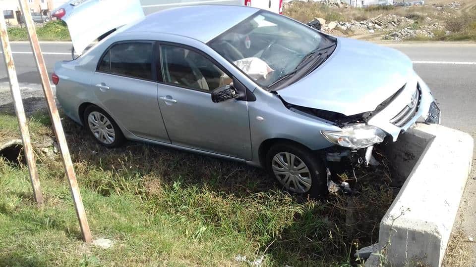 FOTO: Un șofer a adormit la volan și a intrat cu mașina într-un cap de pod. Accident la ieșire din Aiud