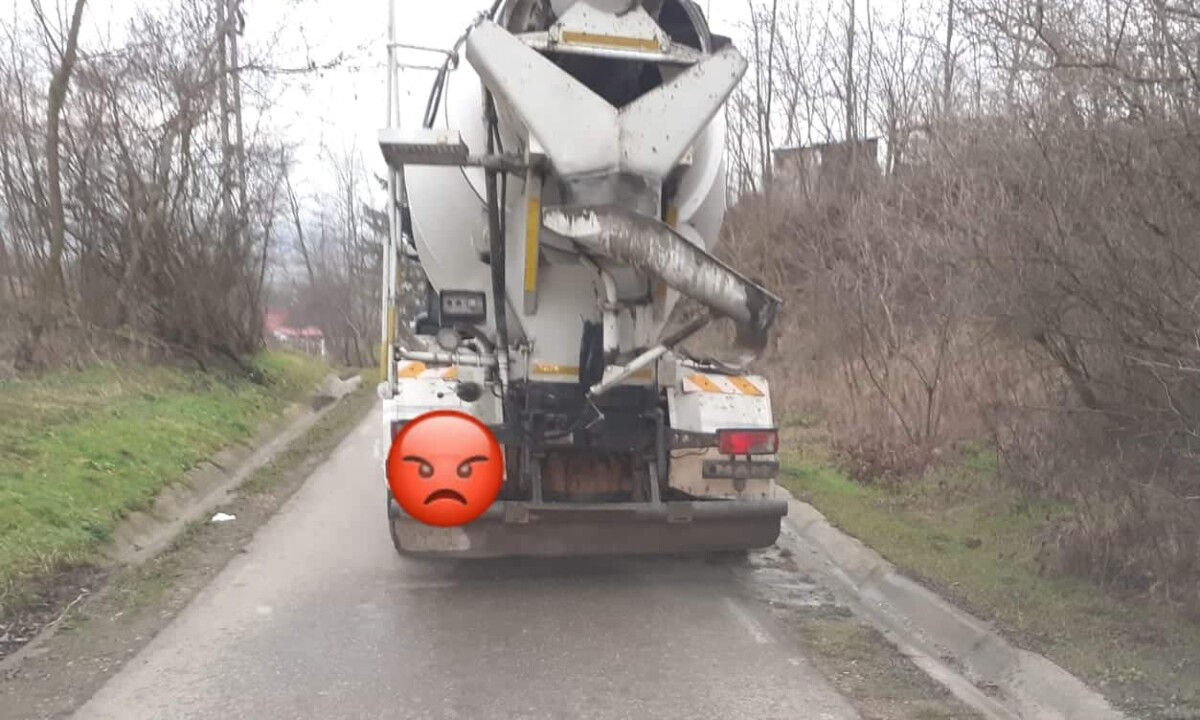 FOTO: Un șofer care și-a spălat autobetoniera pe o stradă din comuna Ciugud, „premiat” de administrația locală