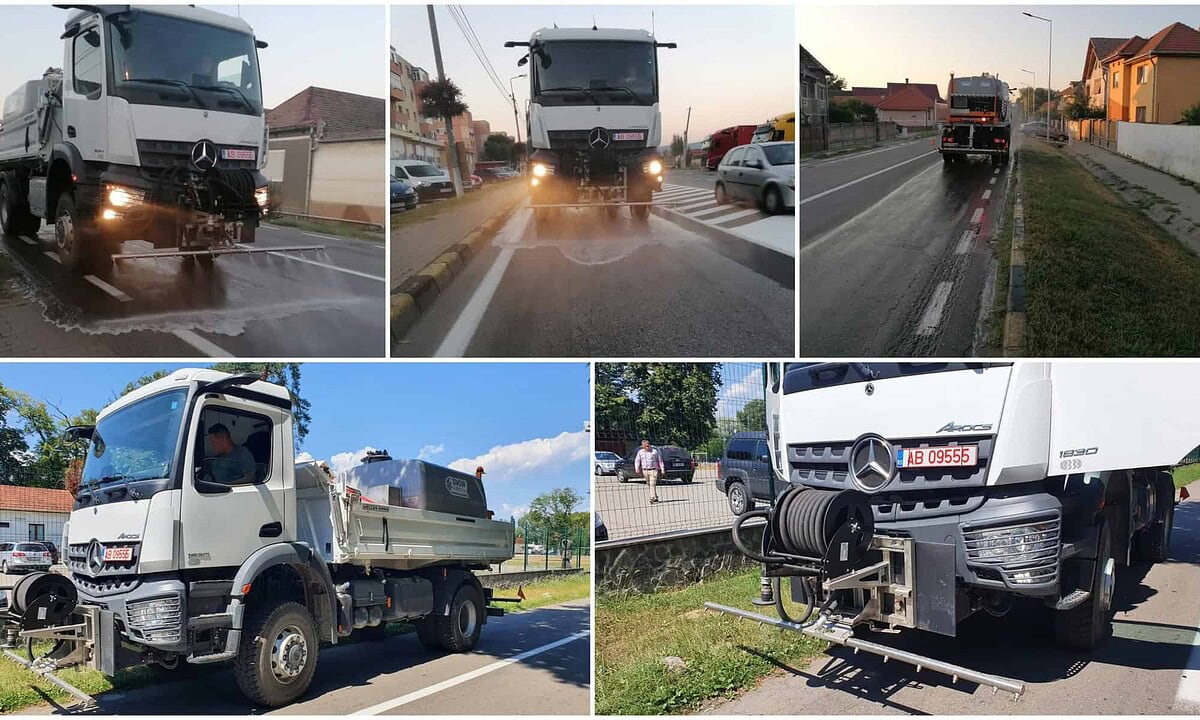 FOTO: Utilaj multifuncțional, achiziționat de Primăria Sebeș. În prezent este utilizat pentru stropit și spălat stradal