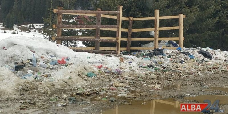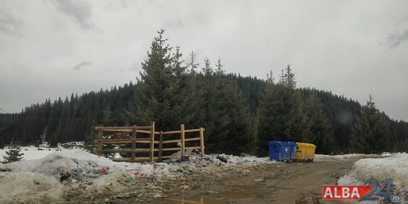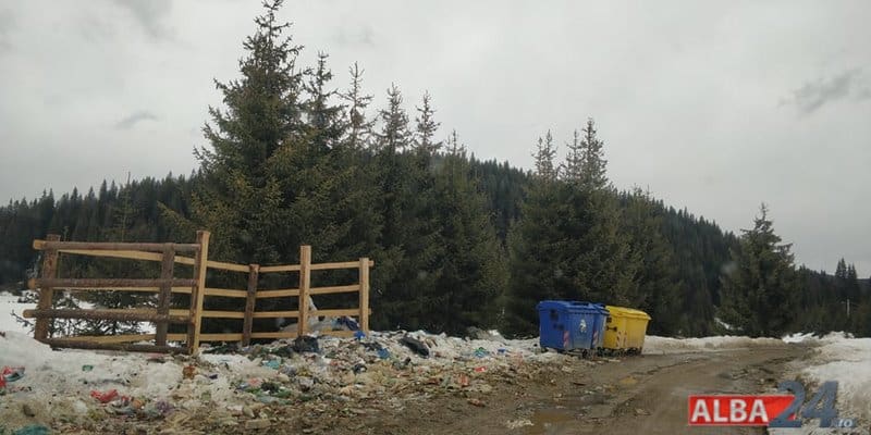 În loc de ghiocei, în Luncile Prigoanei au răsărit, de sub zăpadă, gunoaiele. Mormane de deșeuri au rămas în urma turiștilor care au fost prezenți în weekend la Domeniul Schiabil Șureanu.
