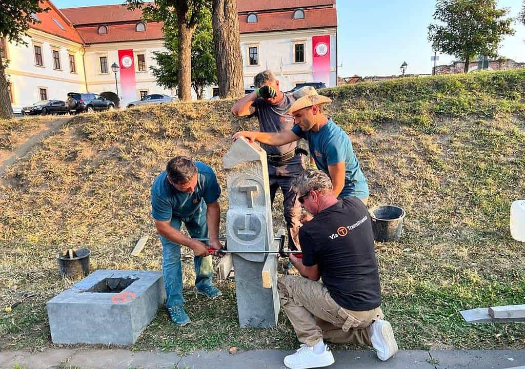 FOTO Via Transilvanica: Cum arată borna sculptată din Cetatea Alba Iulia. Expoziție de artă în natură pe un traseu de 1400 km