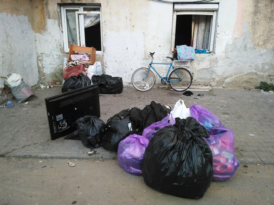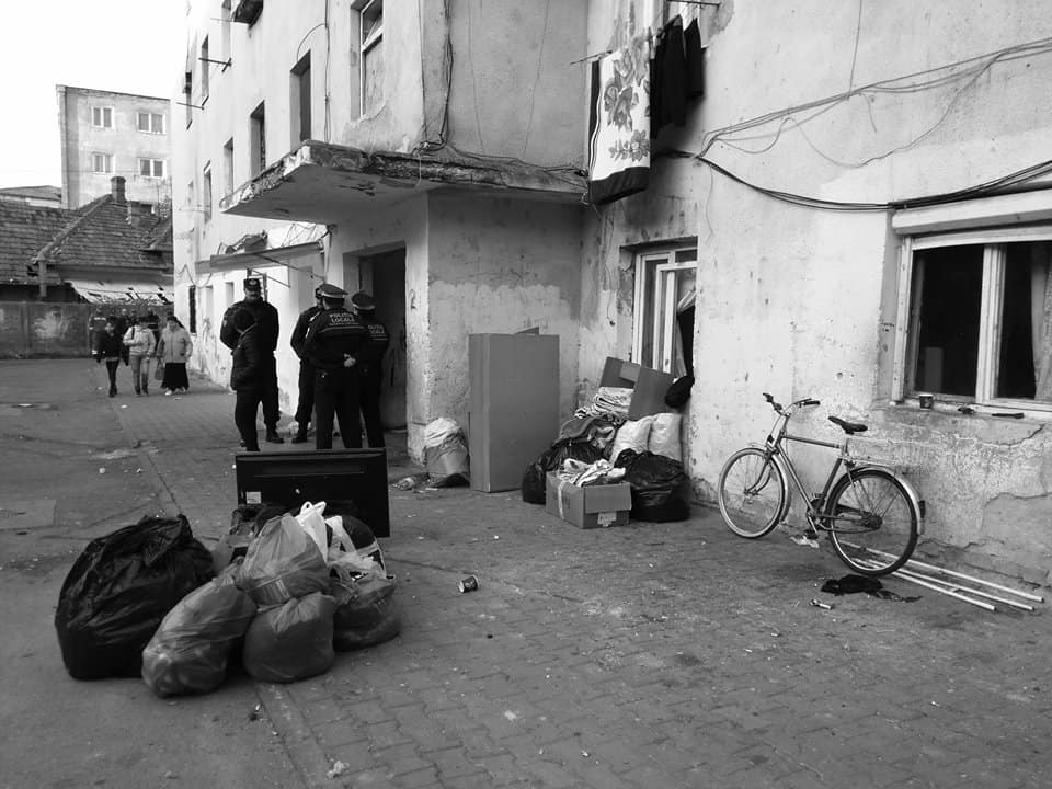 Saci de haine în fața blocului, bucăți de mobilă și copii care plâng pentru că nu înțeleg ce se întâmplă. Prima oră a dimineții a debutat cu scandal în blocul G2/Turturica, unde a început evacuarea locatarilor. Printre ei, oameni de toate felurile: bărbați solizi, capabili de muncă, dar și femei bolnave sau necalificate, persoane cu handicap și bătrâni. O mare parte dintre locuitorii blocului sunt însă copii.