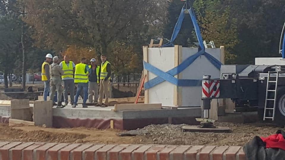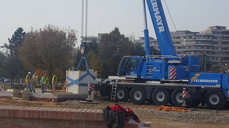 La Alba Iulia a început montarea primelor piese la Monumentul Marii Uniri. Joi, 18 octombrie, constructorii au poziționat pe fundație, cu ajutorul unei macarale de mare tonaj, primul element component al monumentului.