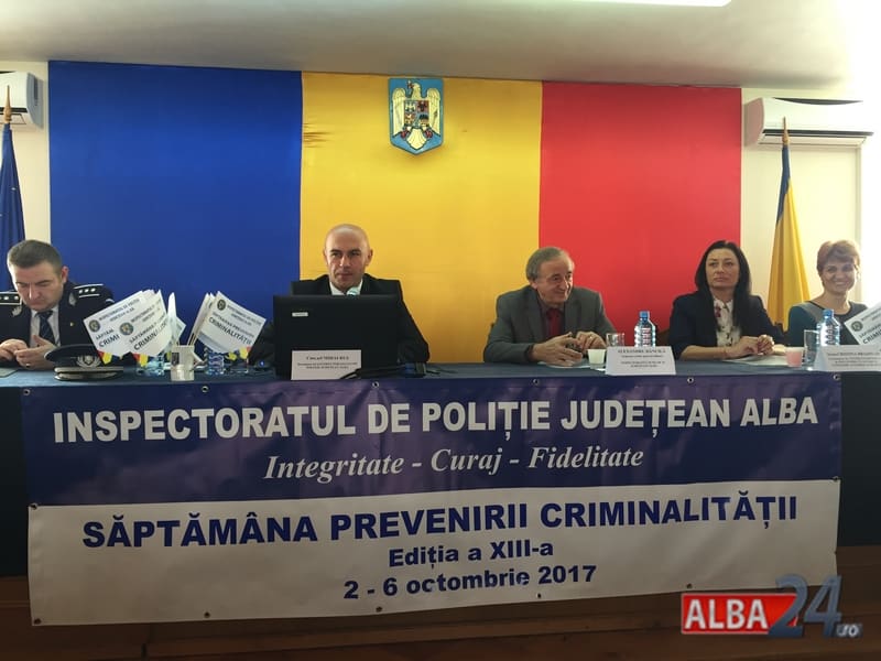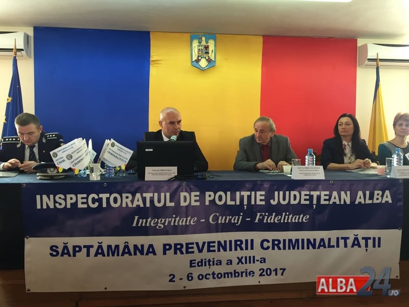 În perioada 2–6 octombrie 2017, se derulează a doua ediție din acest an a manifestării „Săptămâna prevenirii criminalităţii”, interval în care poliţiştii din cadrul Inspectoratului de Poliție Județean Alba vor organiza şi desfăşura activităţi structurate pe diverse domenii de prevenire: prevenirea delincvenţei juvenile, prevenirea victimizării minorilor, prevenirea infracţiunilor contra patrimoniului, prevenirea violenței în familie şi siguranţă rutieră.