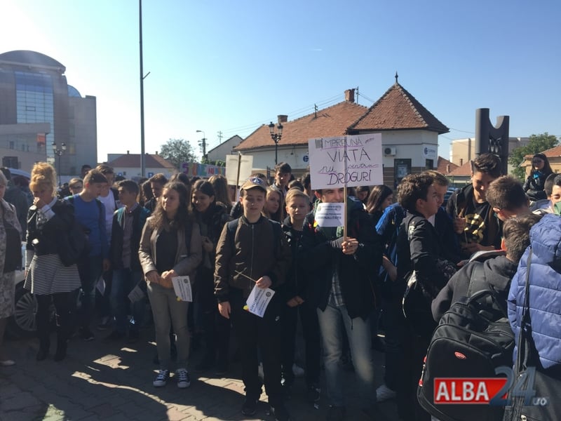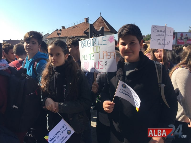 FOTO-VIDEO: A început „Săptămâna prevenirii criminalităţii”, la Alba. Marș împotriva violenței și a consumului de droguri, pe străzile din Alba Iulia