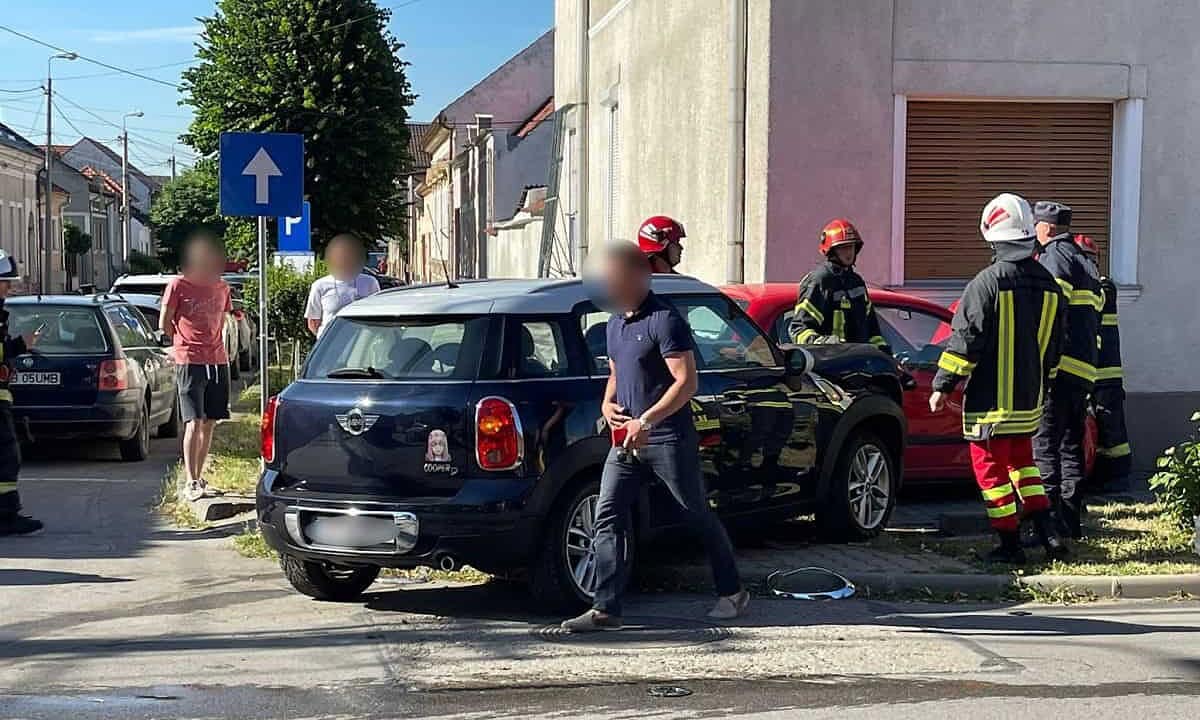 Două mașini s-au lovi, în zona intersecției dintre străzile Regina Maria și George Coșbuc.