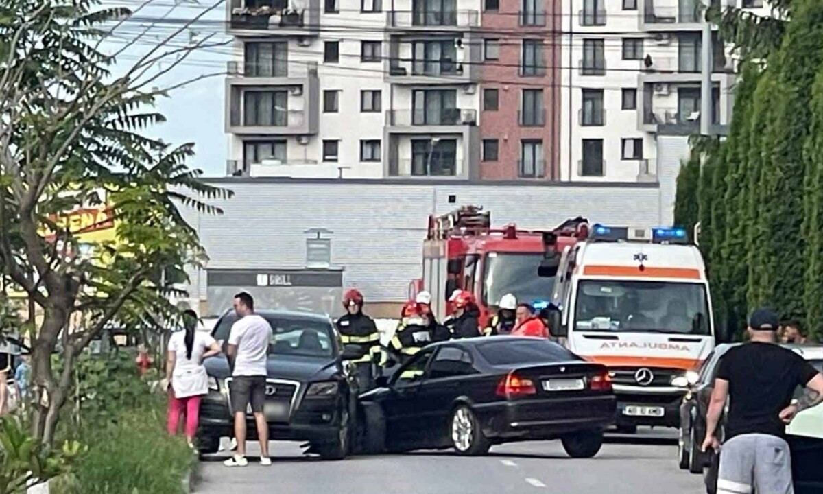 FOTO VIDEO: Accident la Alba Iulia, în zona Kaufland Cetate. Două autoturisme s-au lovit în intersecție