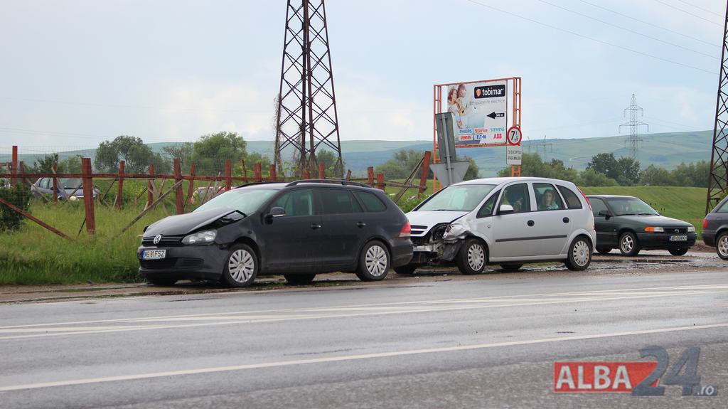 FOTO-VIDEO: ACCIDENT pe şoseaua de centură a municipiului Alba Iulia. Maşini avariate, după o coliziune în intersecţia cu drumul spre Drâmbar