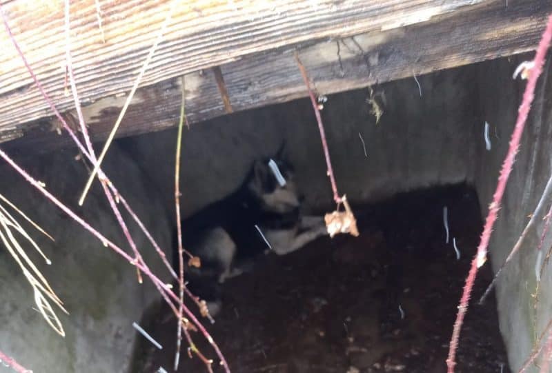 FOTO VIDEO Aventurile unui câine din Aiud: A căzut într-o fosă septică, iar pompierii au fost chemați să îl salveze