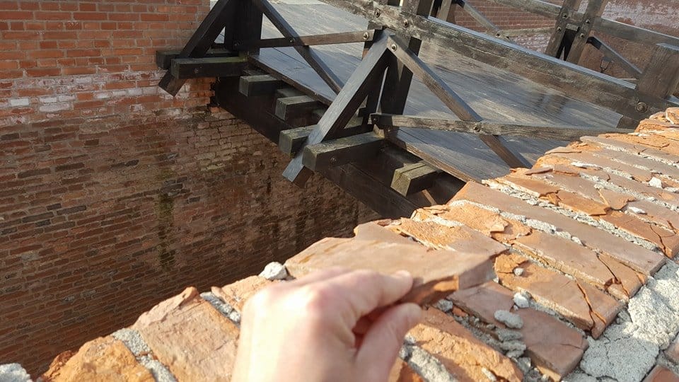 Un cititor Alba24 a surprins pe imagini bucățile de cărămidă căzute. „Bucăți ale zidului de pe Latura vestică a Cetății Alba Iulia Carolina sunt împrăștiate peste tot și pot cădea oricând peste trecători. Autoritățile competente nu fac nimic”, a ne-a transmis cititorul.