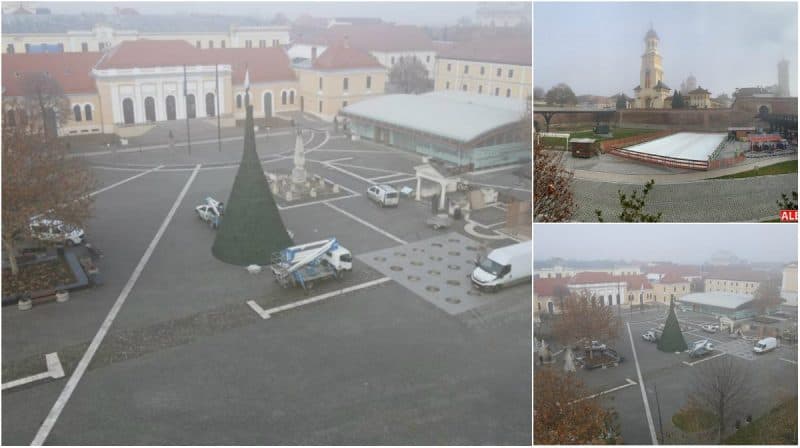 FOTO VIDEO: Cetatea Alba Carolina se îmbracă în haine de sărbătoare. Se montează bradul de Crăciun și patinoarul în aer liber
