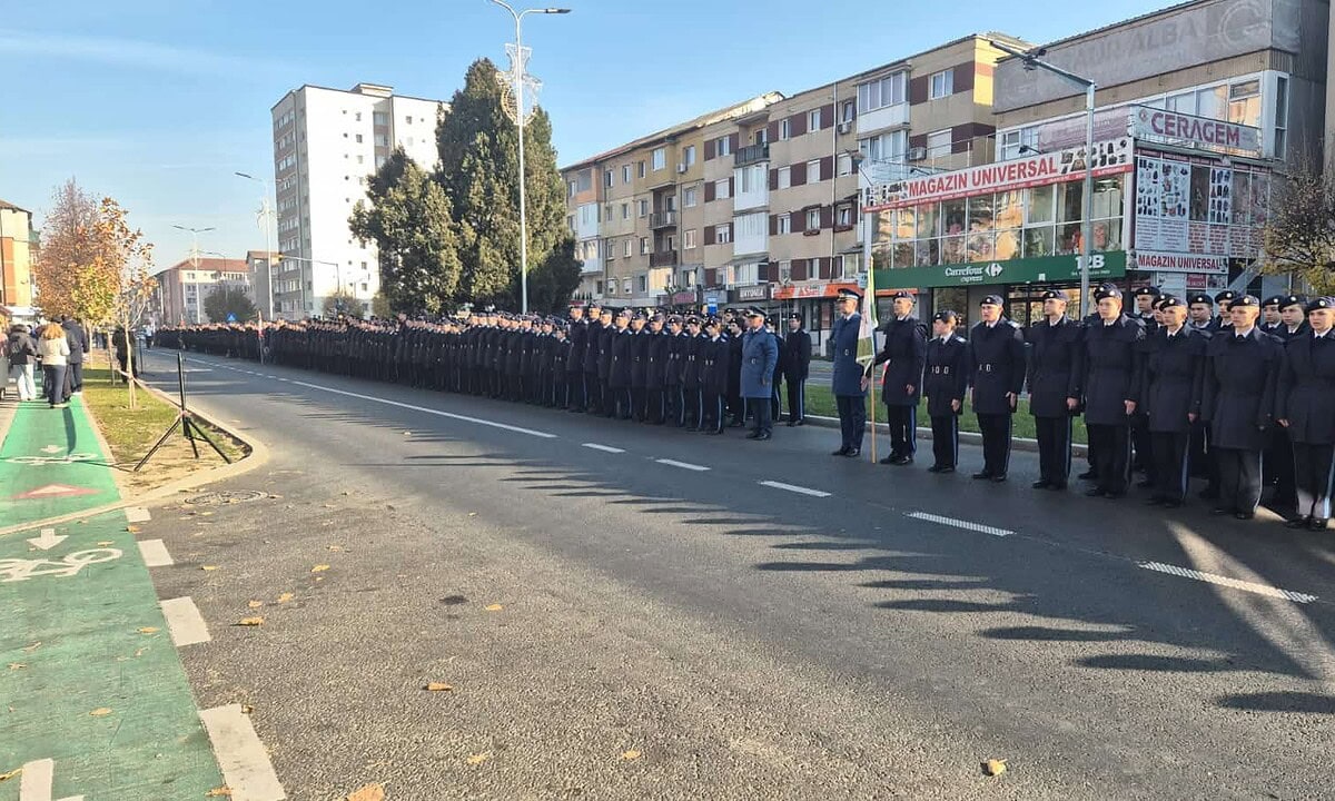 Colegiul Național Militar „Mihai Viteazul” din Alba Iulia sărbătorește 105 ani de la înființare. Pentru a marca activitatea de mai bine de un secol, instituția a organizat vineri, 8 noiembrie, un ceremonial militar. În cadrul evenimentului, zona din fața colegiului a fost survolată de aeronave ale Forţelor Aeriene Române.