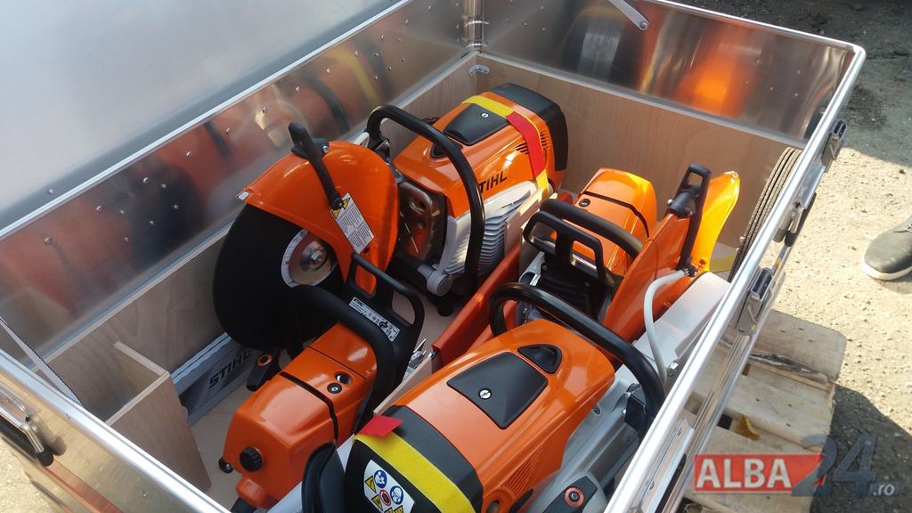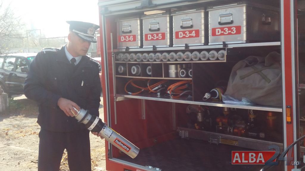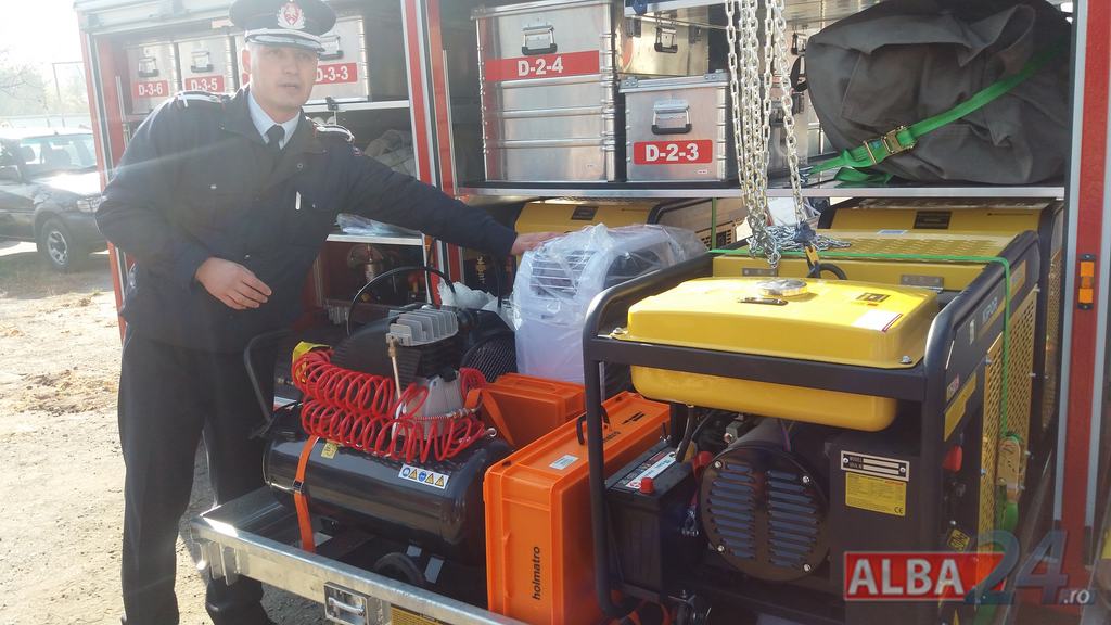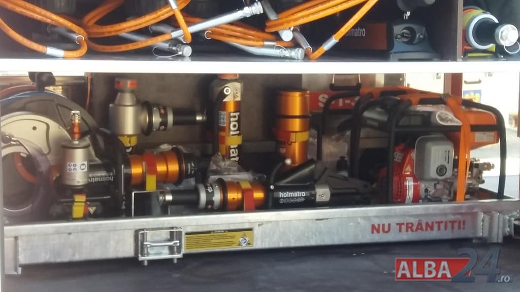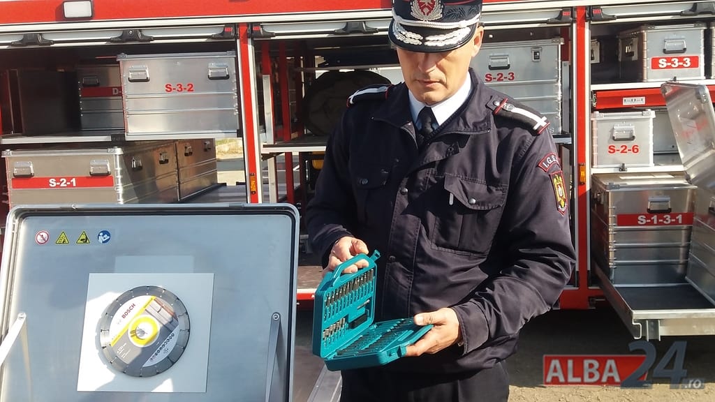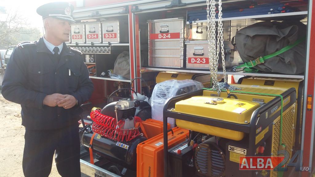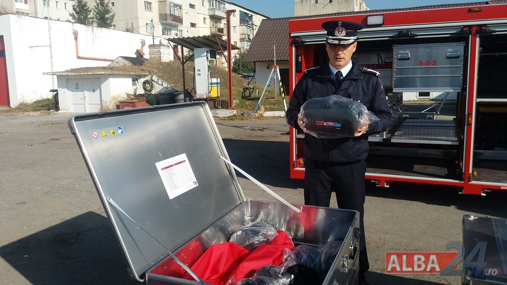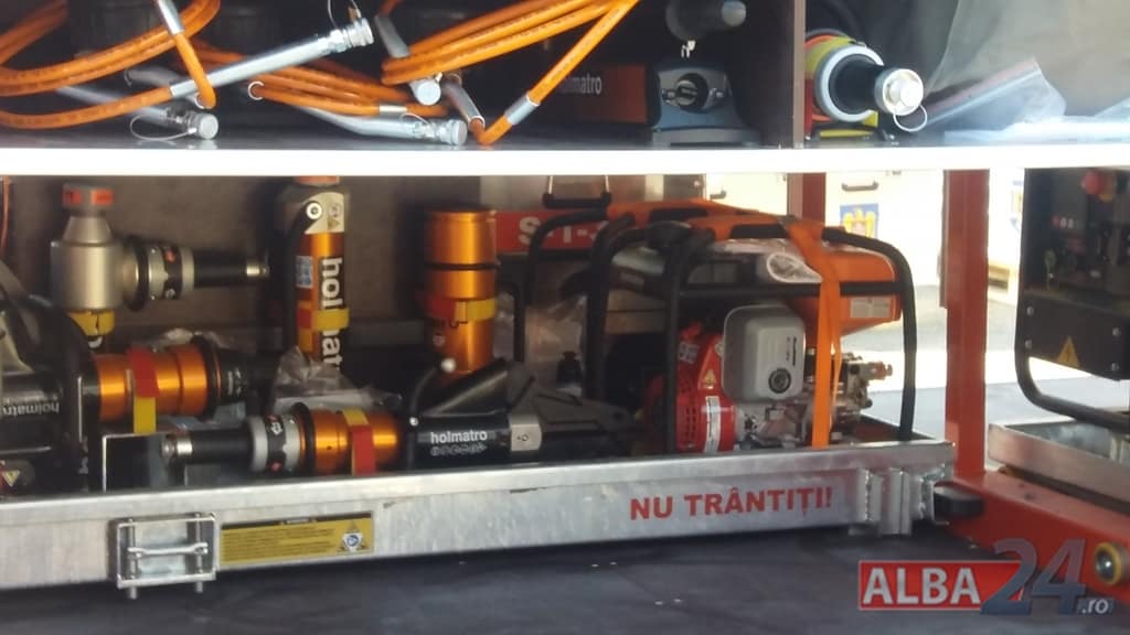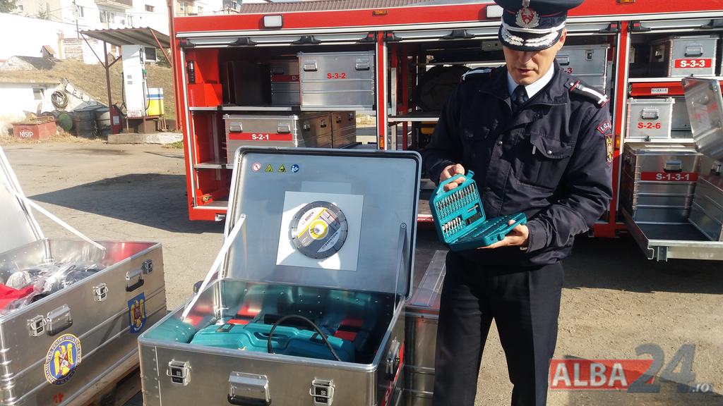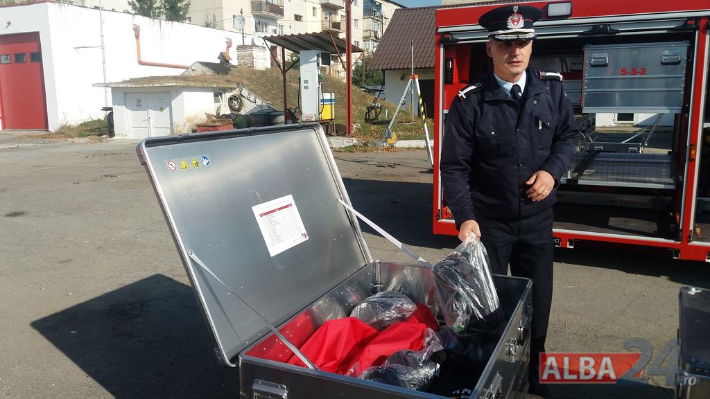 "Conținutul exact al containerului este personalizabil după nevoile punctuale ale fiecărui beneficiar, dar în principiu ele transportă cât mai multe din tipurile de echipamente specifice operațiunilor de căutare-salvare, dar și PSI: echipamente pentru ridicare; pentru iluminat; de descarcerare; de geniu; pneumatice; de tâmplarie; salvare de la înălțime; pentru detecția curentului electric; pentru căutare de victime rămase captive, în urma unor cutremure, alunecări de teren, avalanșe; echipament de protecție pentru salvatori, inclusiv PSI; materiale de construcție; echipamente PSI. Deși avem de-a face cu un volum mare de echipamente, accesul la ele se face rapid, mulțumită unei compartimentări ergonomice", precizează reprezentanţii ISU Alba.