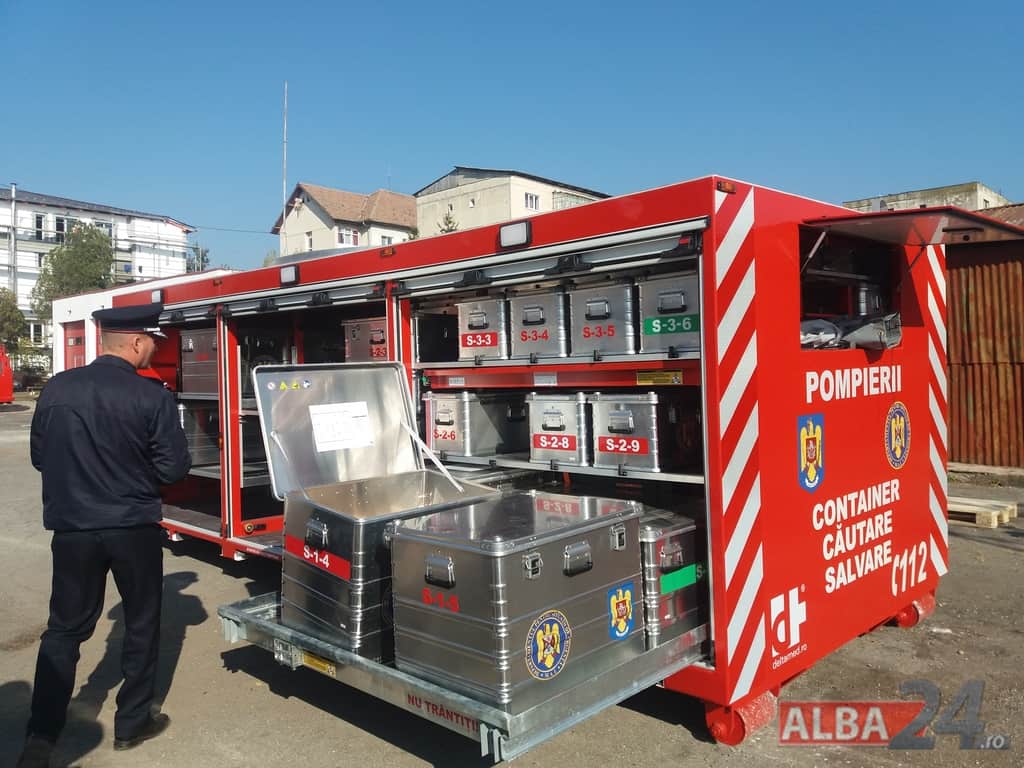 FOTO-VIDEO: Dotări noi la ISU Alba. Container de echipamente, pentru utilizare în operaţiunile de căutare-salvare